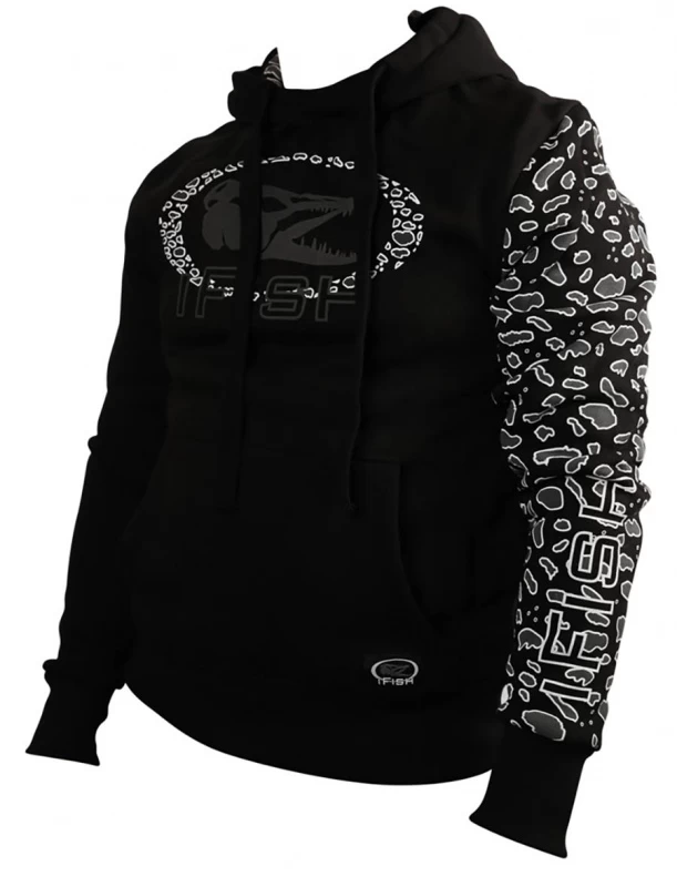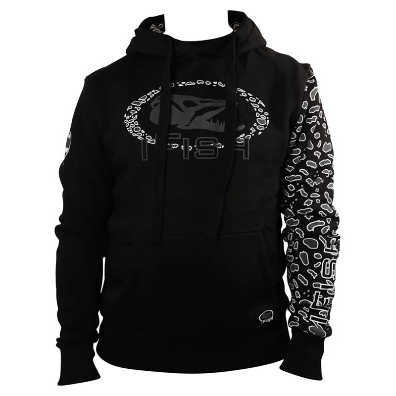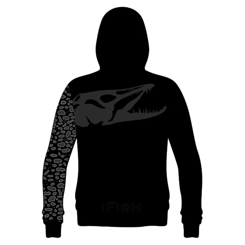 IFISH Hoodie is een zwarte hoodie met IFish logo’s en grijs gestreepte details. Perfect voor wie van snoekvissen houdt!