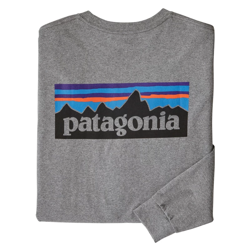 Patagonia M’s LS P-6 Logo Responsibili-Tee, de productie van dit 100% gerecyclede T-shirt met lange mouwen gebruikt 96% minder water en creëert 45% minder CO2 dan een conventioneel katoenen T-shirt.
