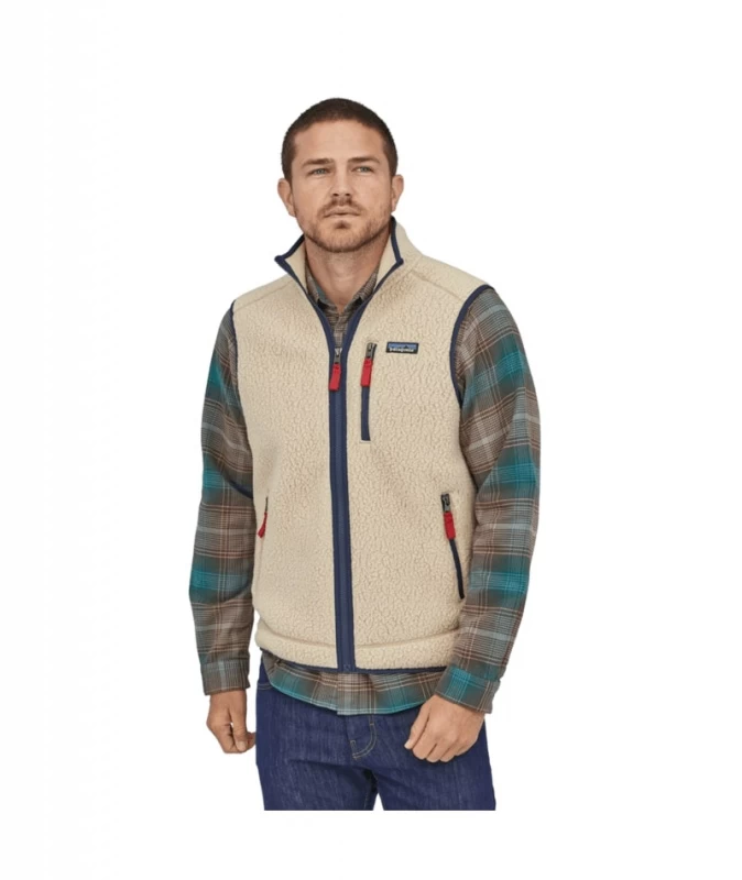 Patagonia M’s Retro Pile Vest El Cap Khaki is een warm, makkelijk te dragen fleecevest van gerecycled polyester dubbelzijdig stevig omgekeerd lam. Fair Trade Certified™ genaaid!