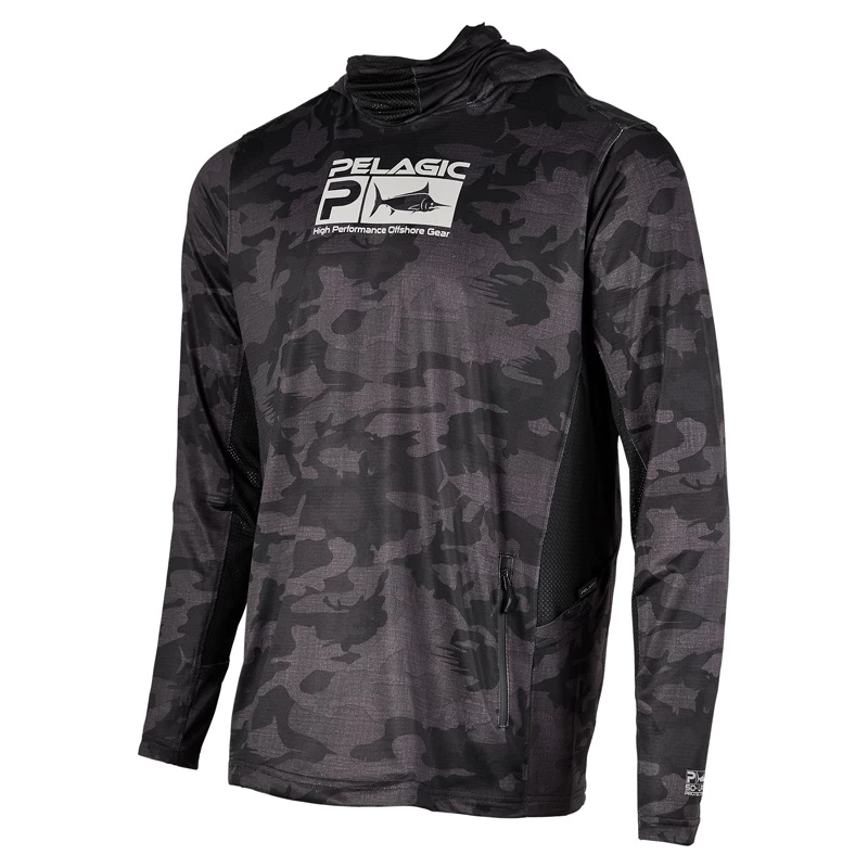 Pelagic Exo Tech Hoody Fish Camo Black is een water- en vuilafstotende hoody met extra ventilatie. Een lichtgewicht hoody voor warm weer!