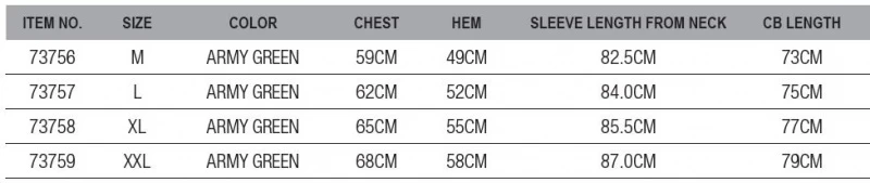 | Outer material: | 50% cotton, 50 polyester 310g/m2 |