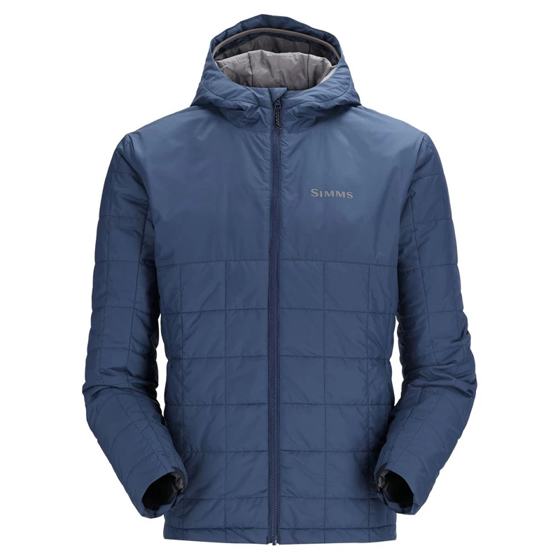De Simms Fall Run Hoody Navy is een comfortabel en ademend jack van gerecycled materiaal met een waterafstotende buitenkant. Isolerend jack dat weinig ruimte inneemt in je bepakking!