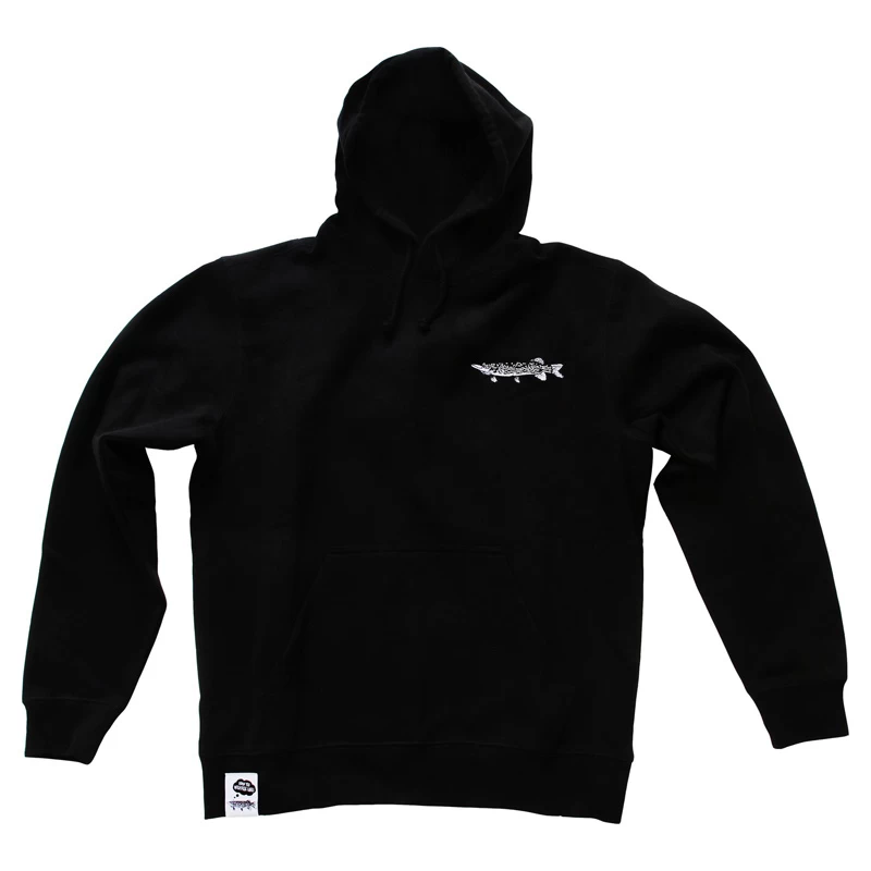 Wolfcreek Lures Pike Logo Hoodie, Black is een zwarte hoodie met een geborduurd logo van een snoek. Perfect voor wie van snoekvissen houdt!