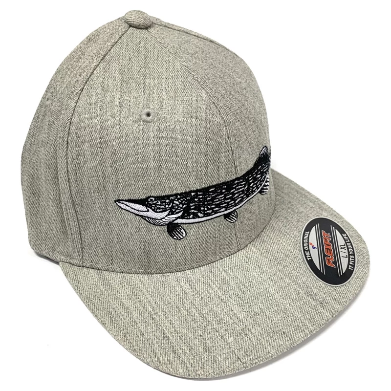 Wolfcreek Pike Logo Fitted Flexfit, Grey Heater is een grijze flexfit cap met de klassieke Wolfcreek-pike geborduurd in de front- Een must have voor u die een sucker voor snoek vissen!